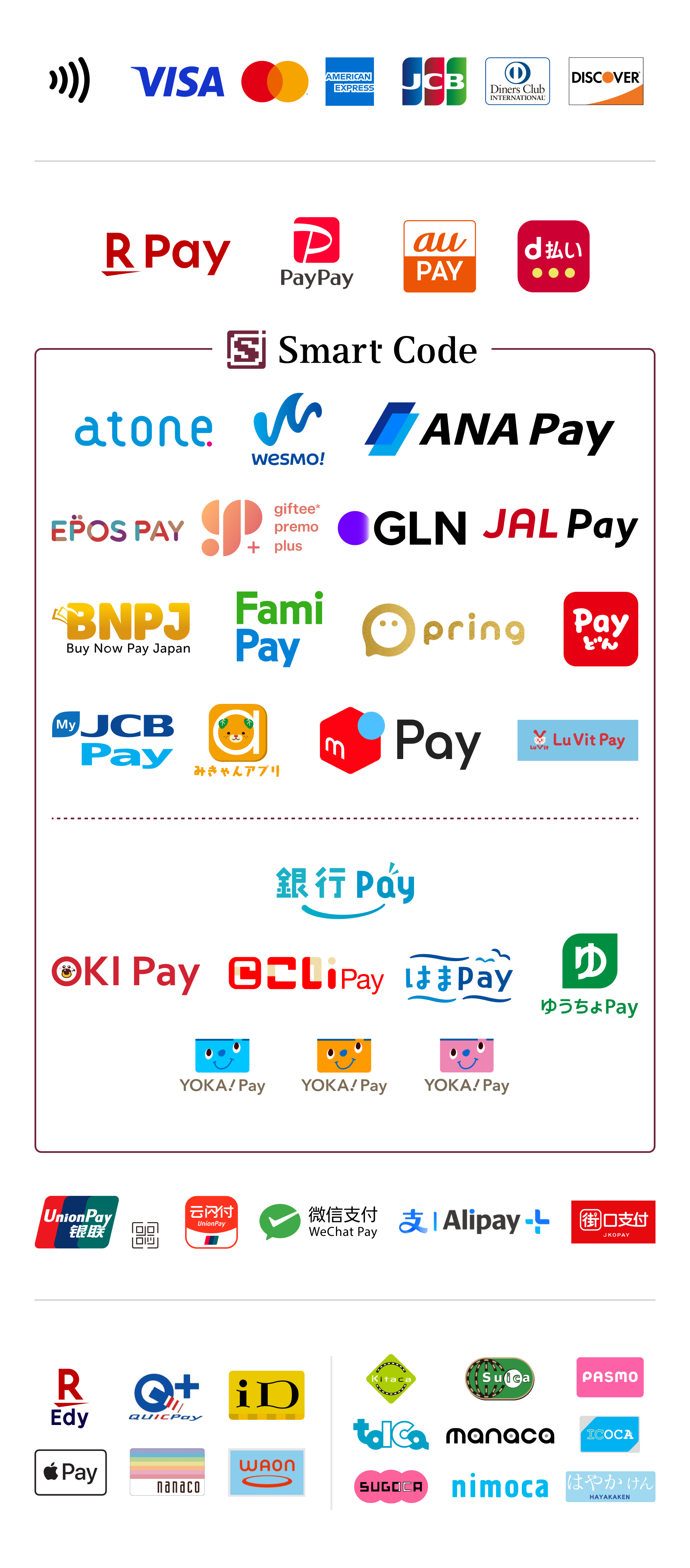 - 2026/02/19(木) ご利用可能な決済方法一覧